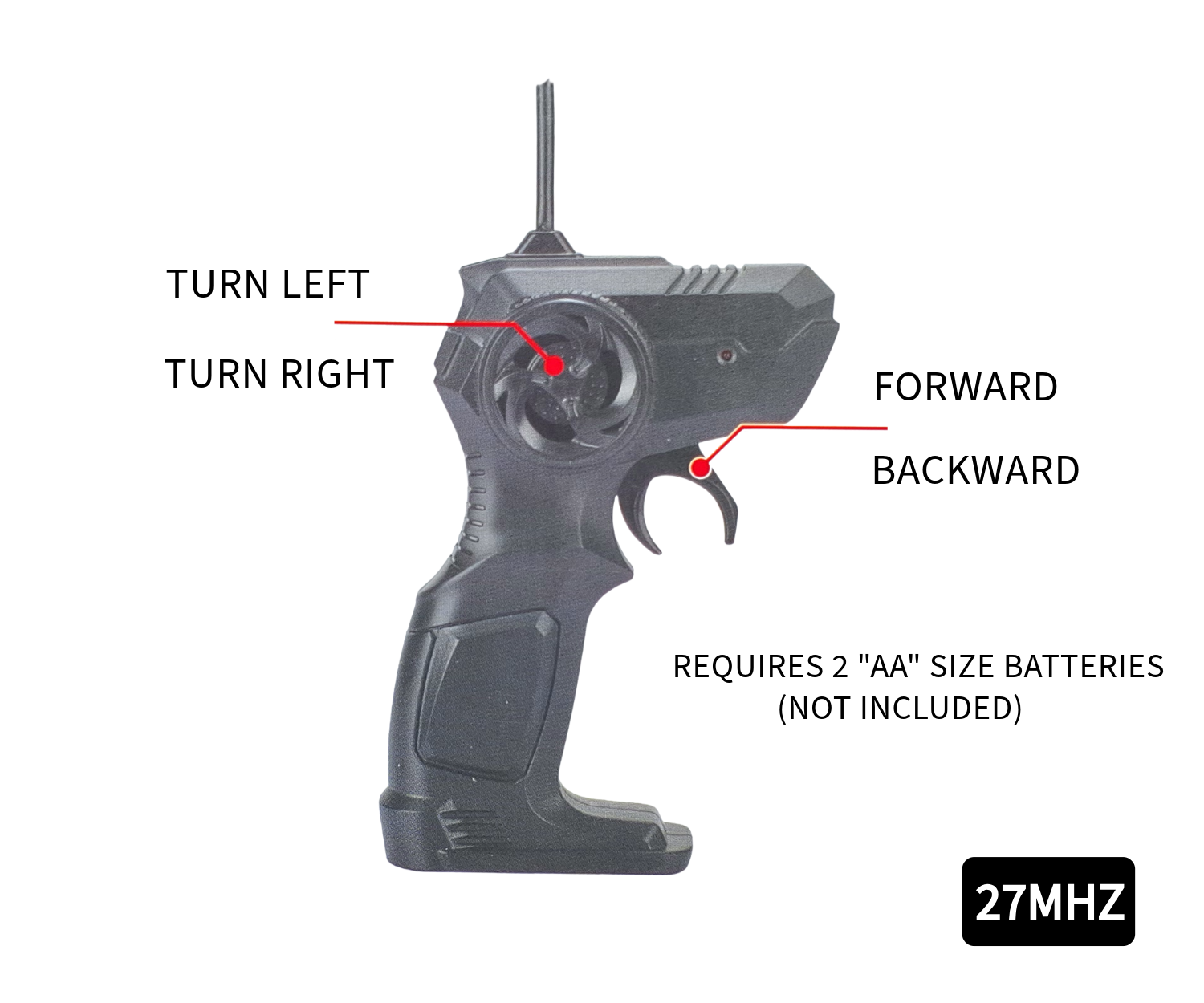 Powerful 27 MHz Remote Control: Smooth control with forward, reverse, left, and right turns.